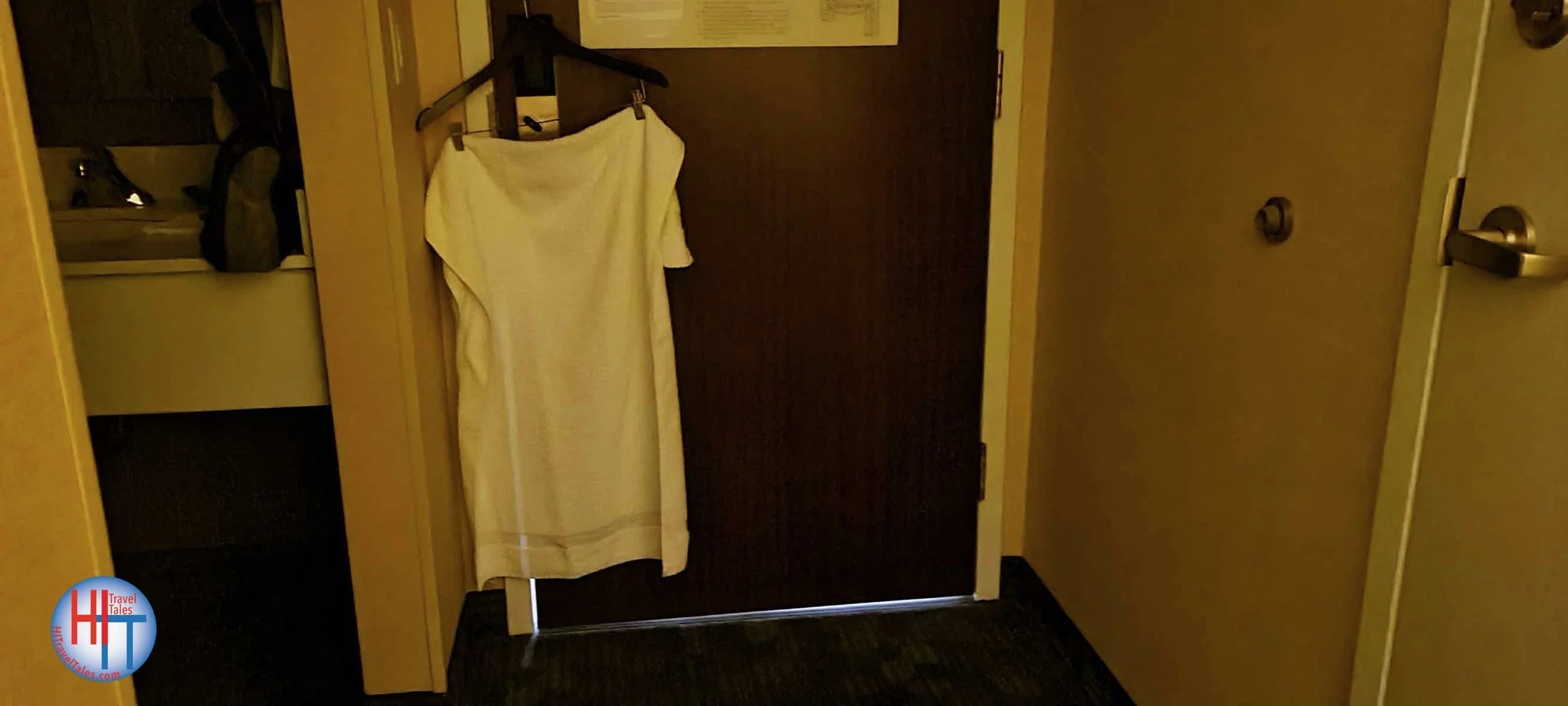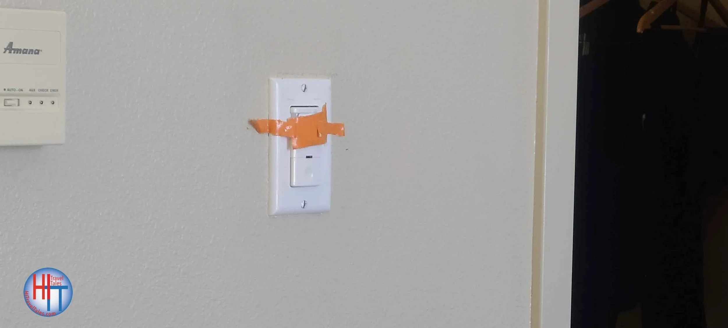 Bathroom motion sensors – OK, so I know hotels want to avoid liability but criminy who wants to be blasted with a blaring light in the middle of the night on a bathroom run?! Turning them off is typically not an option as the light simply resets. It takes some DENSE coverage, going beyond the all-powerful duct tape or luggage tag. Best we can find is thickly rolled towels leaning against the sensor – just make sure it is FULLY covered.