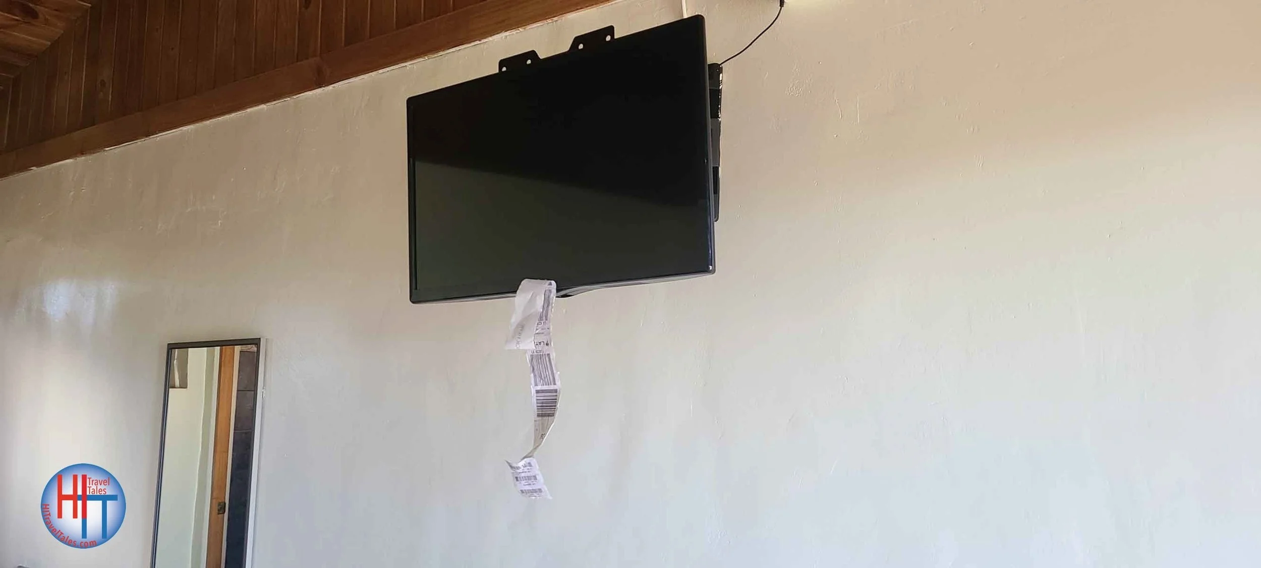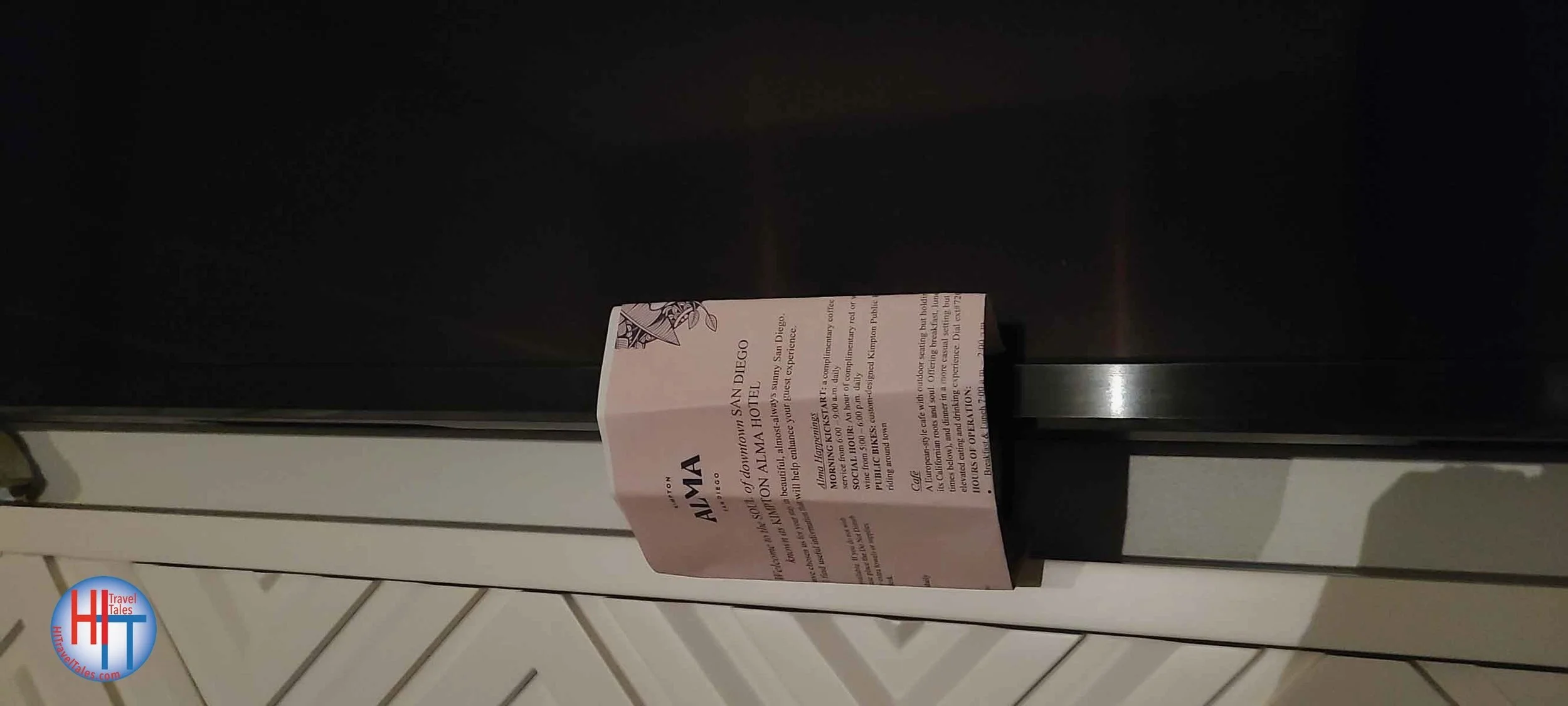 A hotel information sheet helped block the light on the television that was too high for many other things.