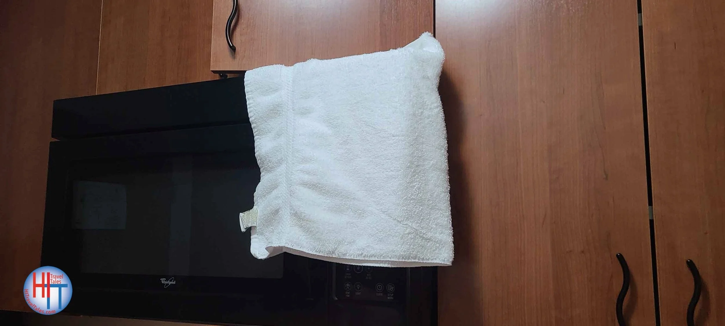 Why are the lights on the face of microwaves so bright? Another towel to the rescue.