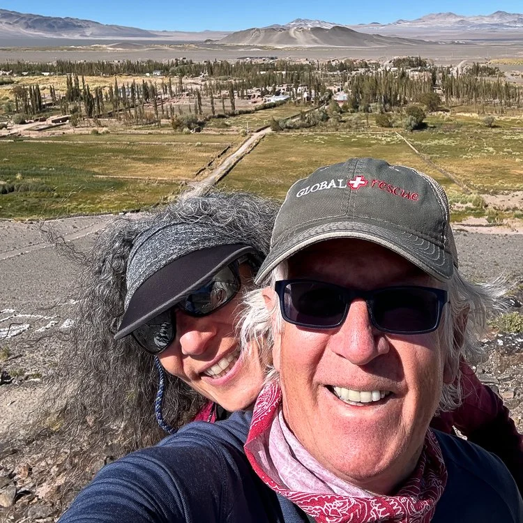 Tracy and Gretchen DuPeza are sitting on the front steps of the inn and porch — not their usual lounging about when they do everything themselves.
