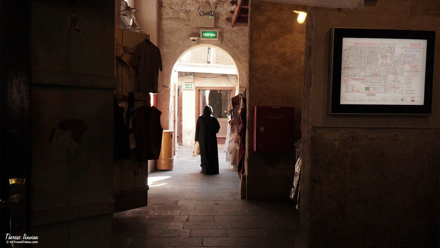 Before processing: In a split second, this woman passed through an arch in the souk in Doha, Qatar, and Therese grabbed the shot, knowing it just would need a bit of massaging.