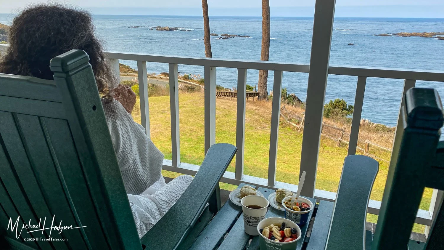 The first one is Brewery Gulch Inn & Spa, less than two miles from town. It offers intimate, super casual lodging with a dynamic view of the ocean from its deck, in part because it is perched slightly up a hill above Highway 1. With just 11 rooms, you may just feel as if you are visiting friends and hanging out at their home. One of the awesome things at this inn is the meals that are included: You get a cooked-to-order breakfast, and the evening wine hour offers complimentary beverages with small plates that are frankly plenty for a light dinner. The entire focus is on sustainable travel and organic, local locally sourced food.