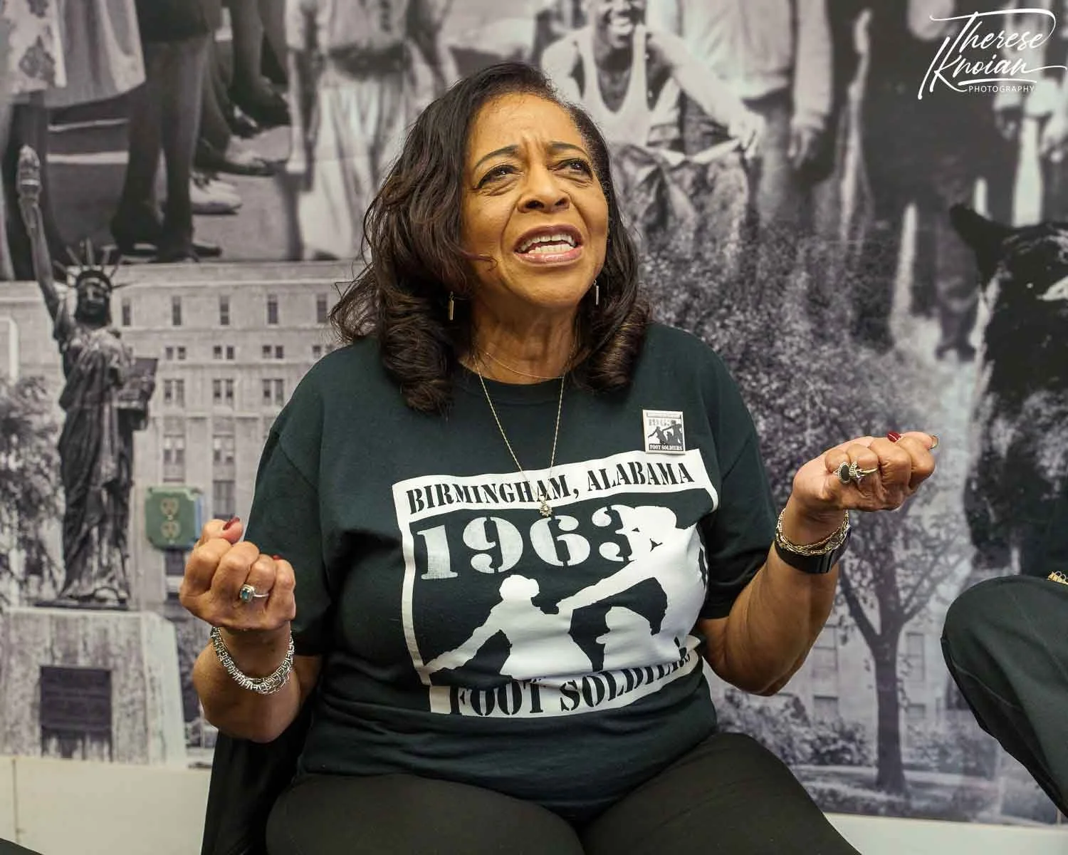 As demonstrations continued with thousands of what they call “foot soldiers,” police filled jails with mass arrests of adults, and the call was put out for children to join the struggle. Hundreds came out, and the police sent police dogs after them and shot high-pressure fire hoses at them. Today, the so-called Children’s Crusaders have their own organization and meeting place – and they are an outspoken bunch.