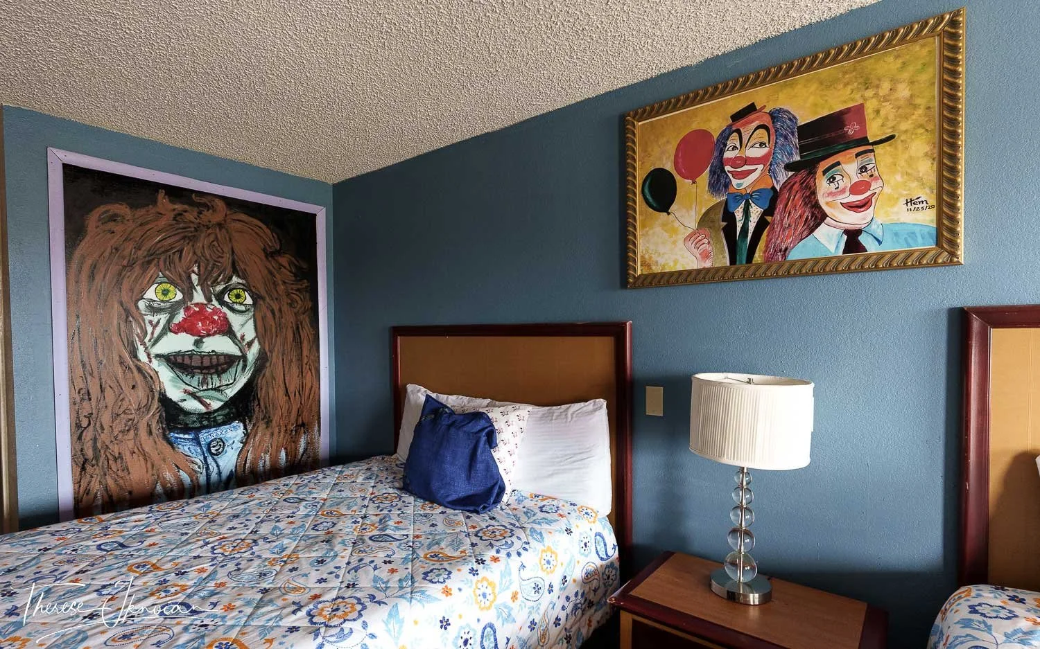 Wanna sleep in this bed at the Clown Motel? Nooooooo, me neither.