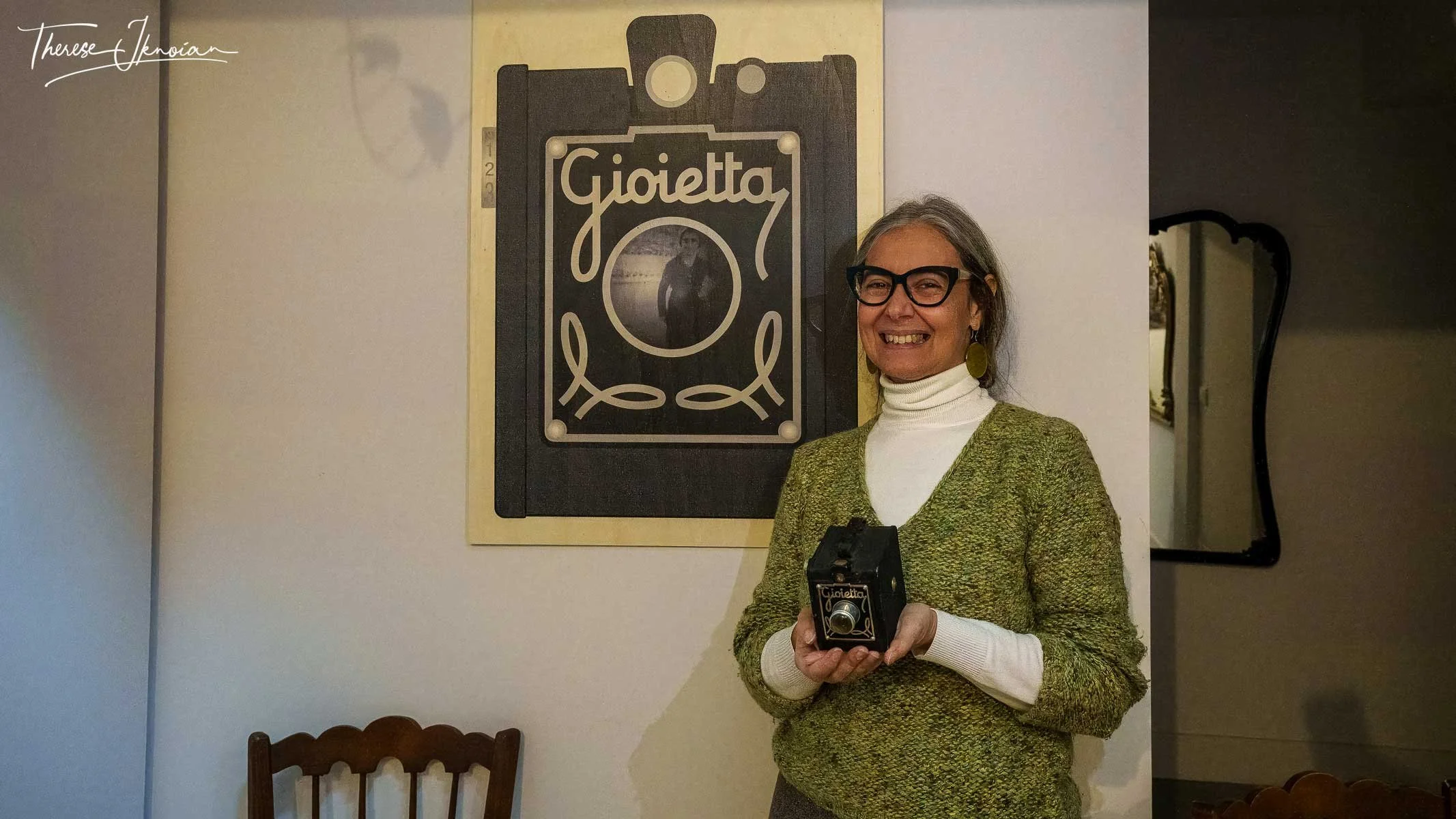 The ever-smiling Elisa, holding her grandmother’s camera.