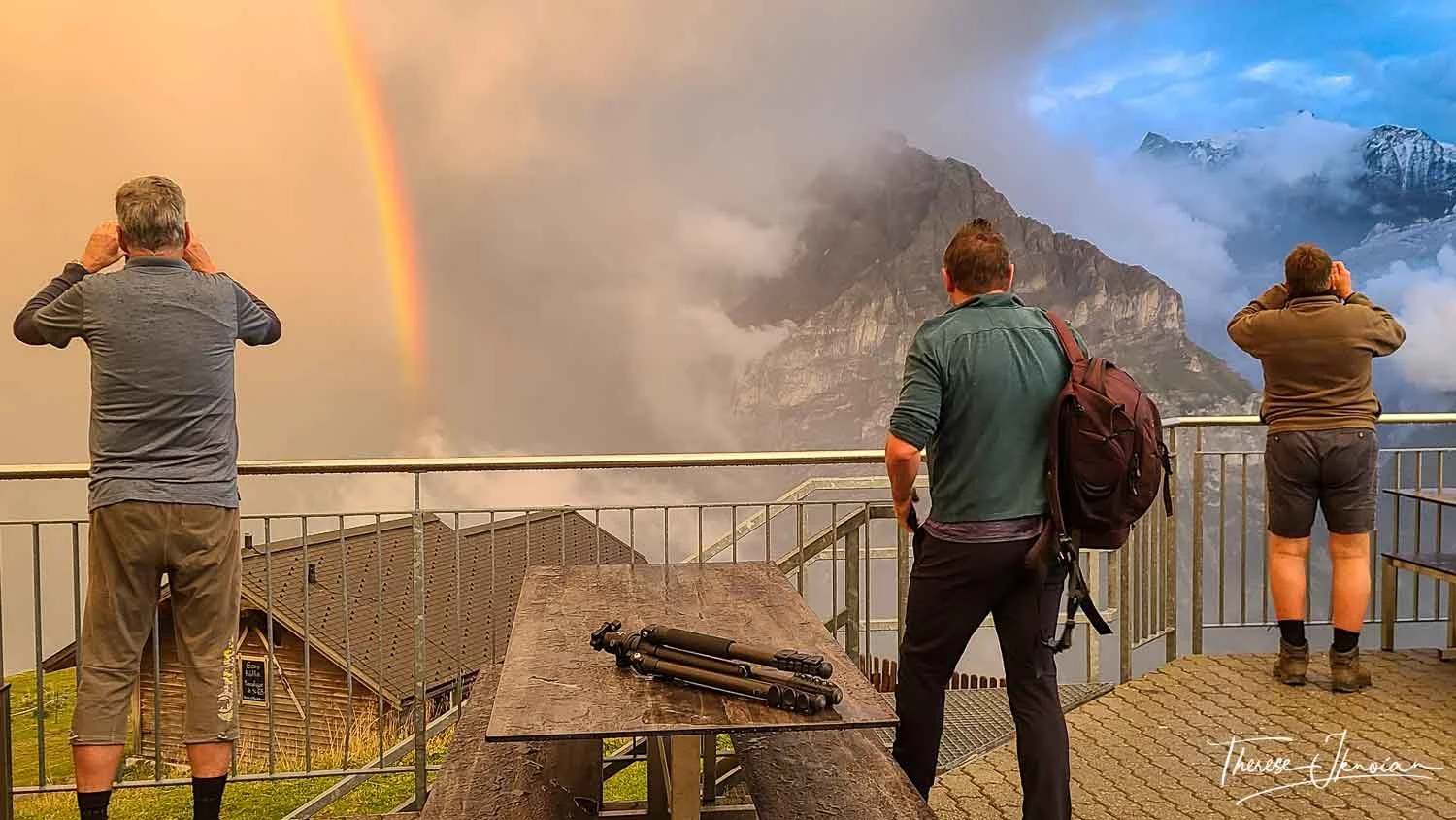 The restaurant at Berggasthaus First is very cozy with lovely views of the Eiger and the nearby mountain peaks. Our food was hot, basic, and delicious – as one would expect in a Swiss mountain inn. The place is a mecca for photographers, offering stunning views that change with the clouds and light. And then there is the local wildlife that comes out to scavenge scraps once things quiet down.