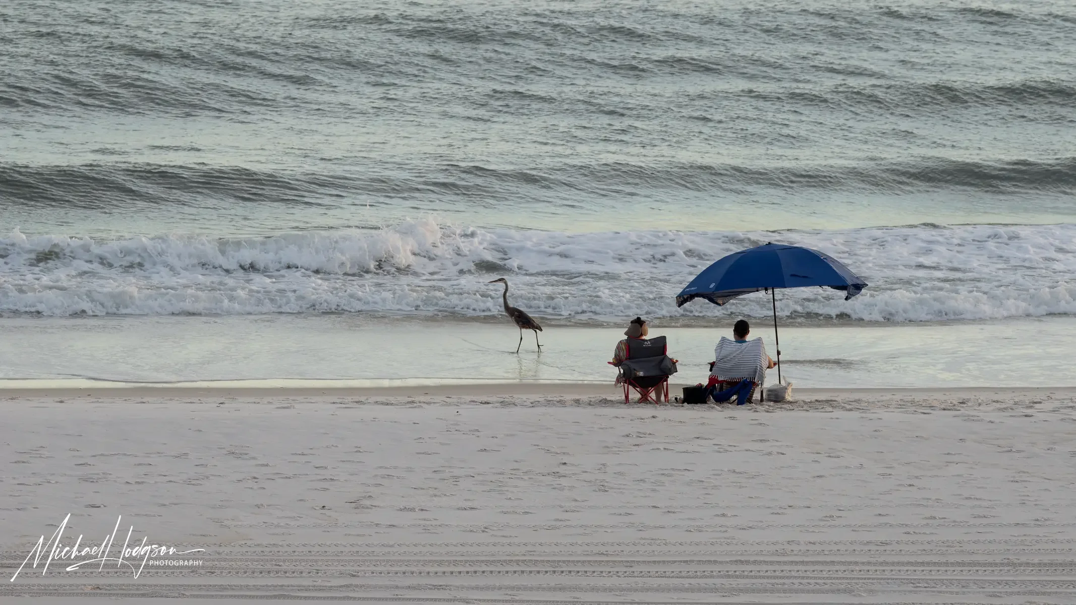 Just another evening sitting on the beach outside The Lodge at Gulf State Park. The blue heron is a regular.