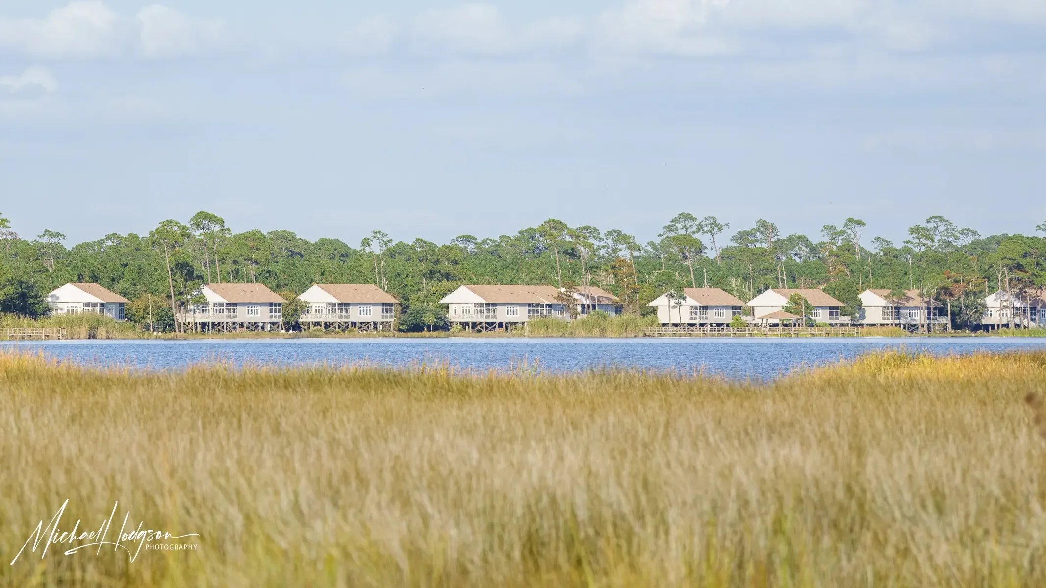 Looking across Lake Shelby at the Eagle Cottages lining the shore.