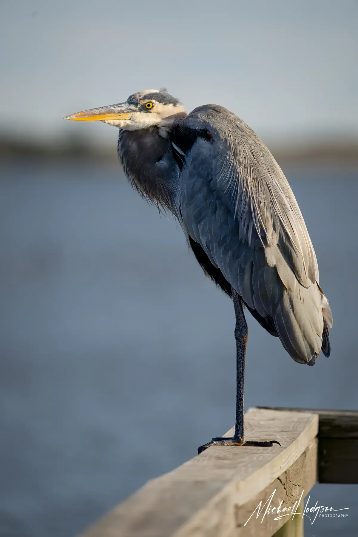 A great blue heron visited the dock near Hummingbird Cottage every morning I was there.