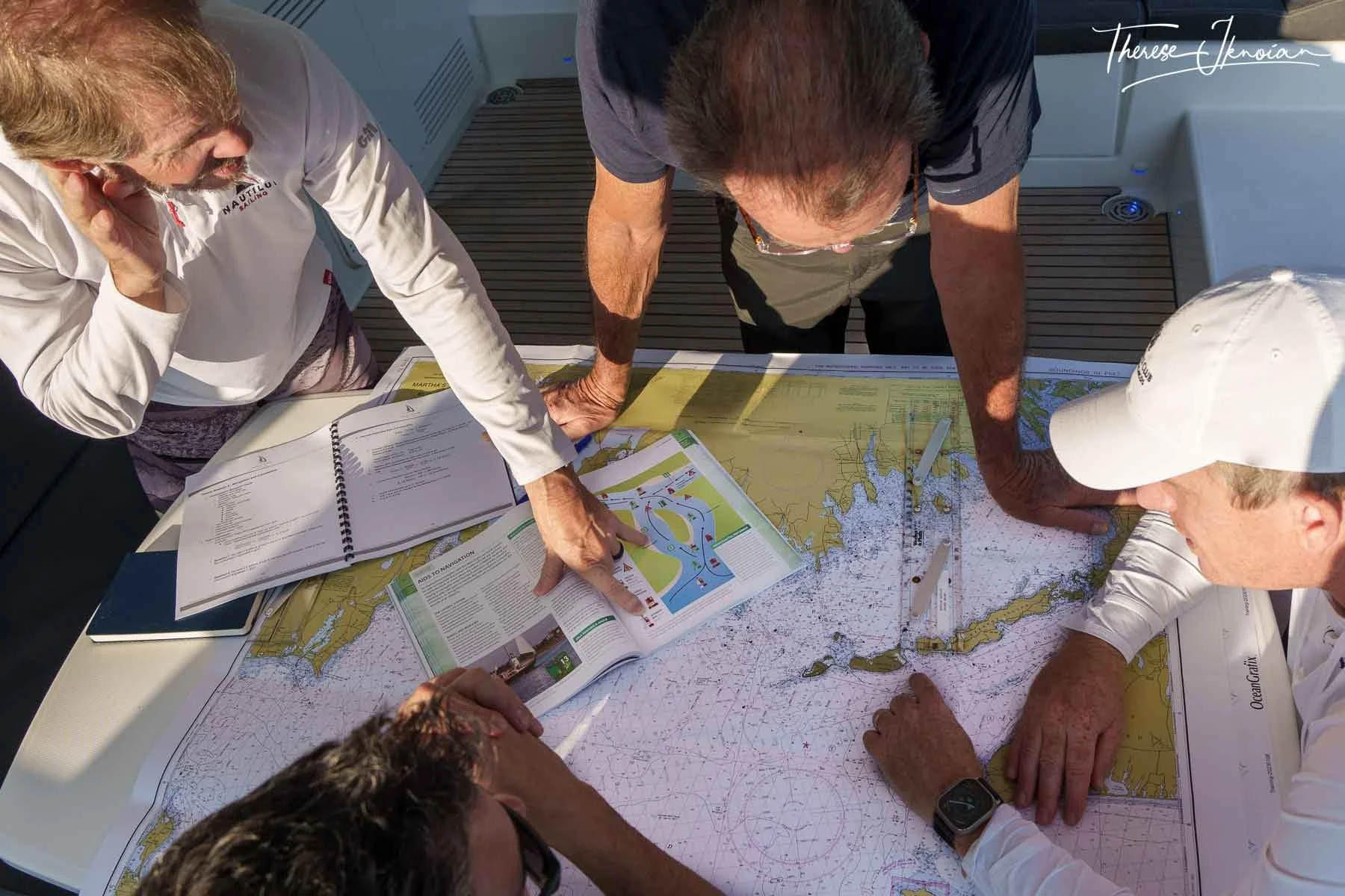 Mornings tended to be peaceful times, with students studying, sipping coffee, writing in journals, or finding a solo seat on the boat to enjoy the sunrise. We were told on the first day that finding your private time was very important during an immersive liveaboard sailing adventure. And that is precisely what I did with the mornings: Escape to the bow with hot coffee and a few moments to breathe in the clear air and listen to the sound of the sea. No morning is complete without more learning, however.
