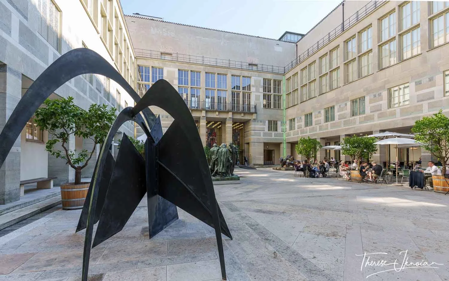 The open-air bistro and sculptures in the old main section, or Hauptbau, of the Kunstmuseum Basel.