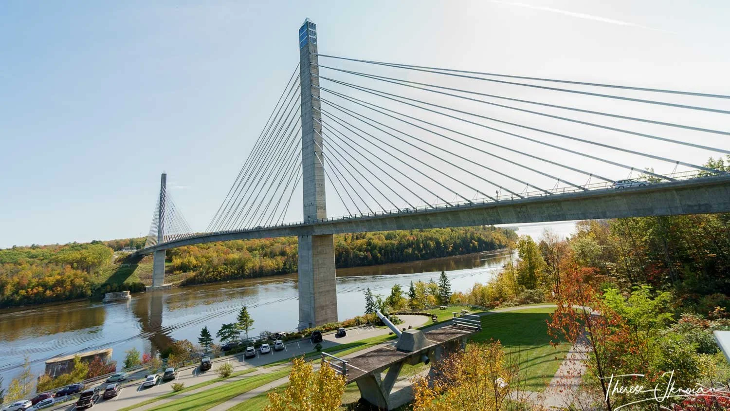 The graceful Penobscot Narrows Bridge offers stupendous views from its observatory, seen at the top on the right — the tallest bridge observatory in the world.