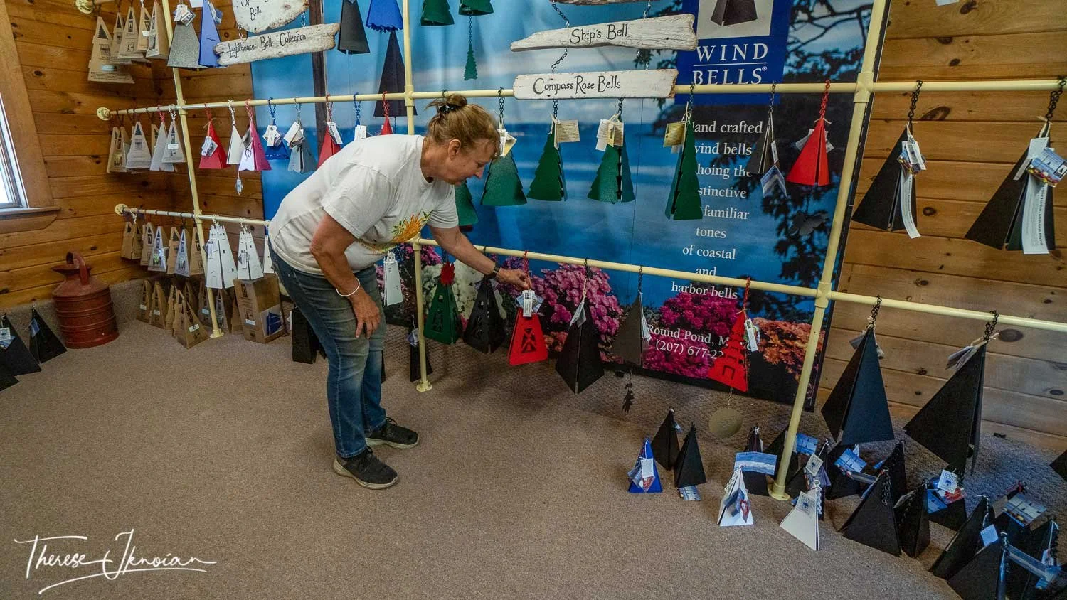 The sounds of the buoys are so haunting and yet reassuring. Little-known fact: Every single one has a different sound, which sailors get to know. Even if they can’t see a landmark, they will know where they are. These reverberating tones burrow deep into your soul and remain there long after you leave Maine. That’s what prompted Connie Davidson’s father, Jim Davidson, a long-time lobsterman who spent countless hours with these bells guiding him on the ocean, to start building wind bells that replicated the sounds of Maine.
